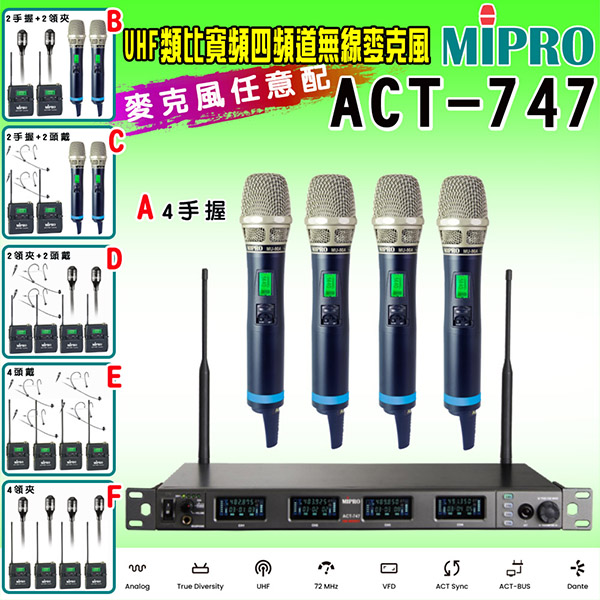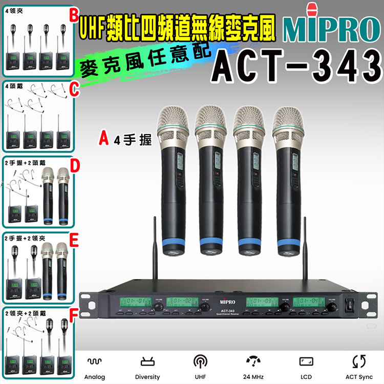 永悅音響 MIPRO ACT-314無線麥克風組(發射器4組+頭戴式2組+領夾式2組)全新公司貨 免運