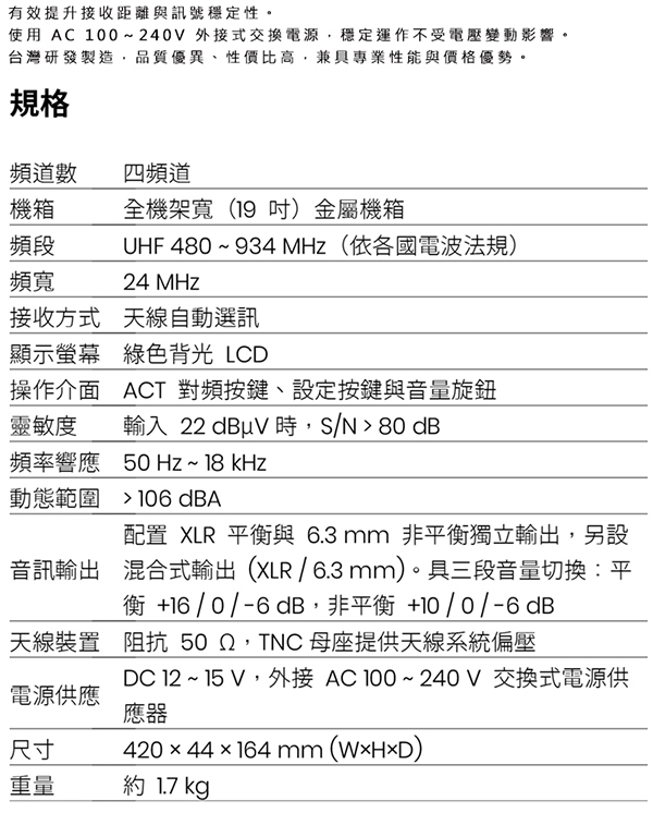 規格如有變動,恕不另行通知,