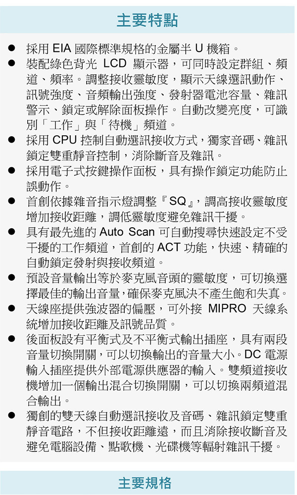 首頁 > Mipro 有線 / 無線麥克風