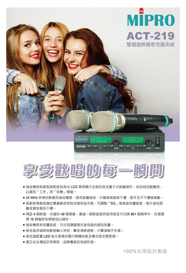 MIPRO ACT-219 配ACT-26H手握式無線麥克風2支MU-360音頭