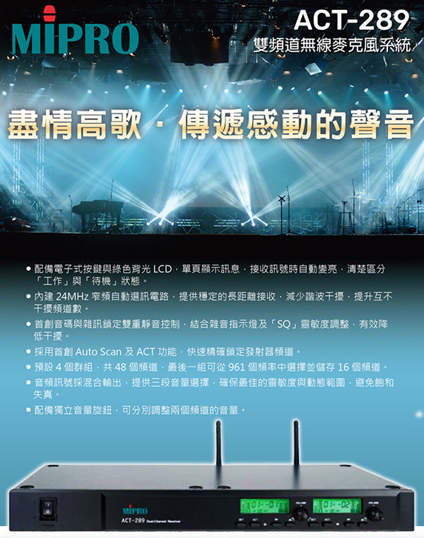 【MIPRO】ACT-289 雙頻道UHF無線麥克風 (ACT-29H/MU-80III)