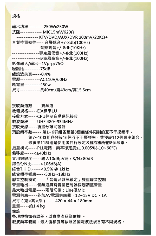 規格如有變動,恕不另行通知,