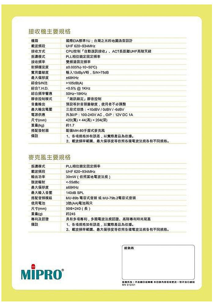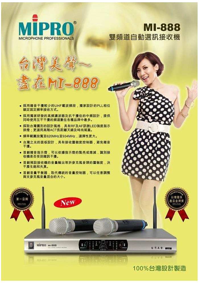 永悅音響 MIPRO MI-888 (MU-78II音頭)手持2支無線麥克風組全新公司貨 (免運)