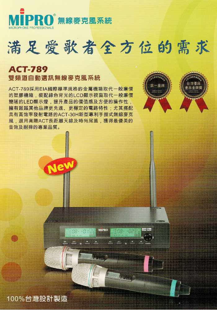 永悅音響 MIPRO ACT-789 (MU-90音頭)手持2支無線麥克風組 贈三項好禮 全新公司貨 (免運)