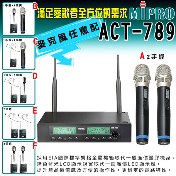 永悅音響 ACT-789 雙頻道無線麥克風 (ACT-32H/MU90配件六擇一)