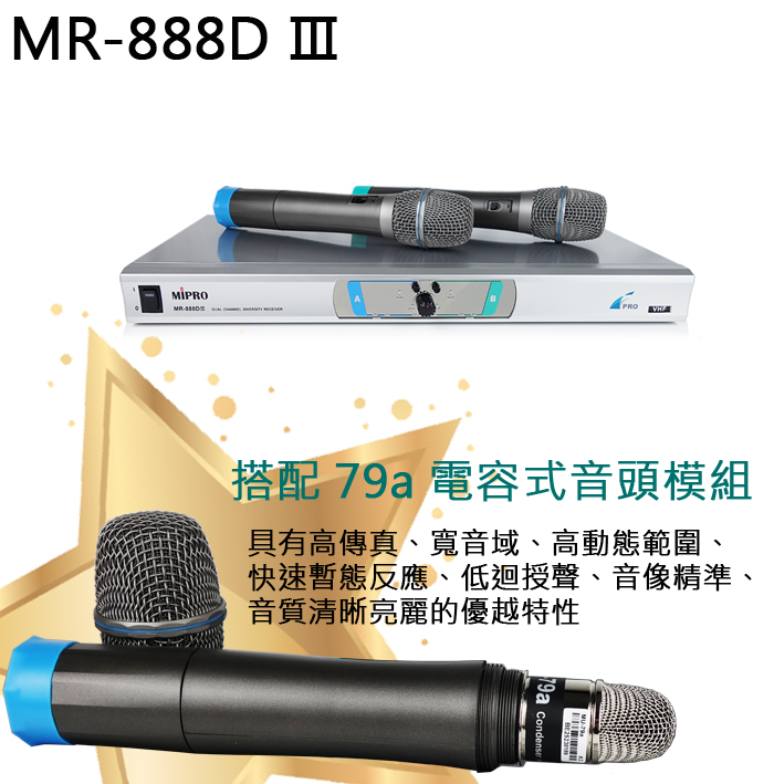 永悅音響MIPRO MR-888DIII(MU-79A音頭)手持2支無線麥克風組全新公司貨 (免運)