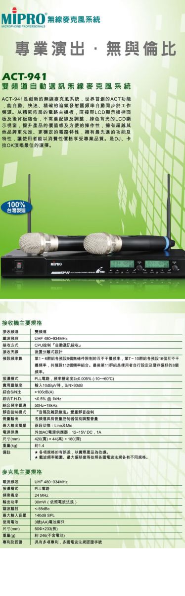 永悅音響 MIPRO ACT-941 (MU-90音頭)手持2支無線麥克風組 贈三項好禮 全新公司貨