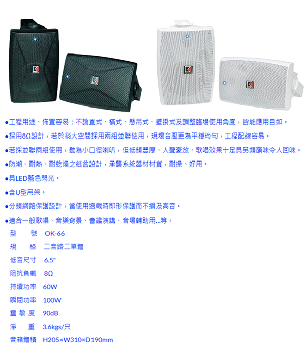 Audioking OK-66 黑色 (6.5吋小型背景音樂喇叭一對)