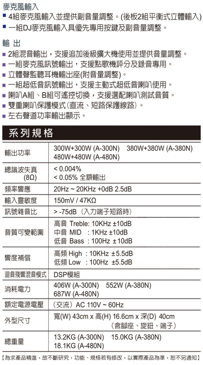 規格如有變動,恕不另行通知,