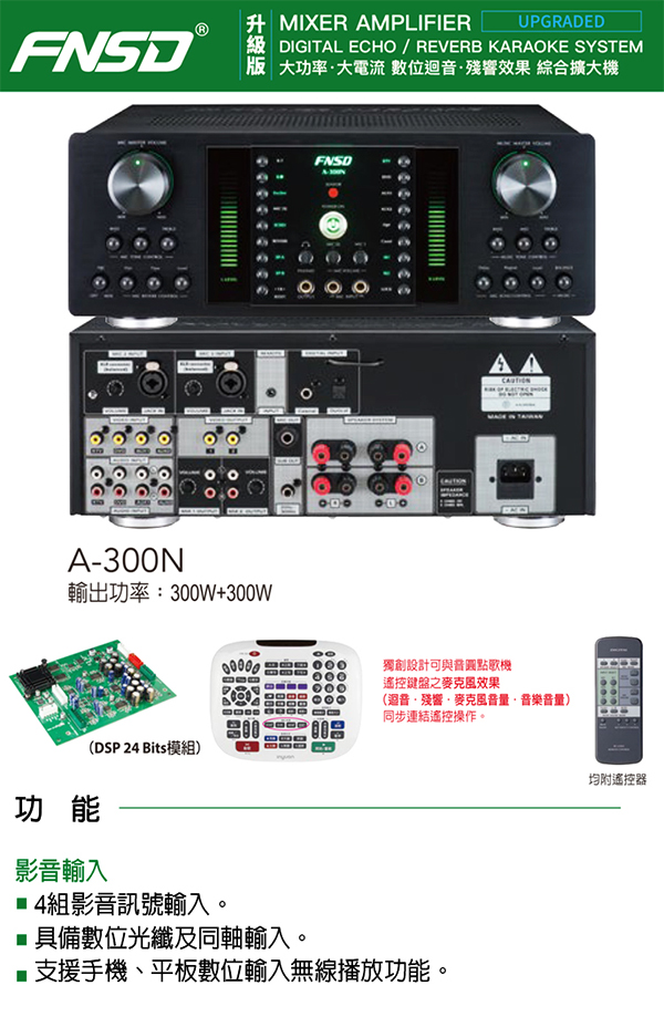 FNSD A-300N 升級版 數位迴音殘響效果 綜合擴大機(300W+300W)大功率大電流 卡拉OK擴大機