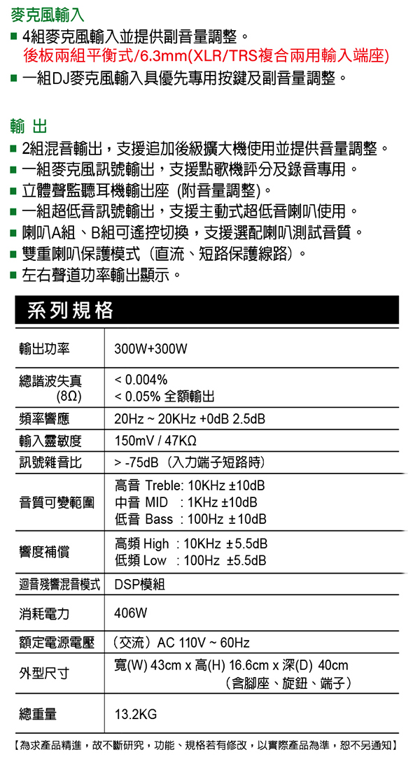 規格如有變動,恕不另行通知,