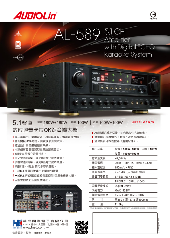 永悅音響 FNSD AL-589 5.1聲道綜合歌唱擴大機 華成電子製造 全新公司貨