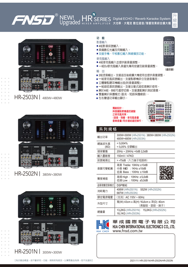 永悅音響 FNSD HR-2501N 數位迴音/殘響效果綜合擴大機 全新公司貨