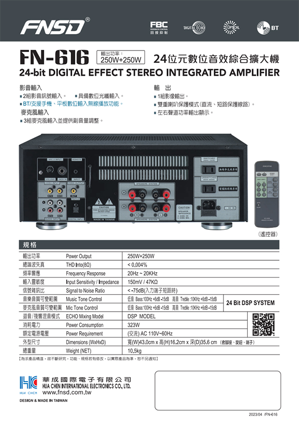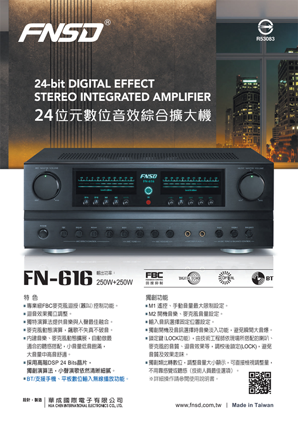 FNSD FN-616 24位元數位綜合擴大機(卡拉OK/營業用擴大機 250W+250W)