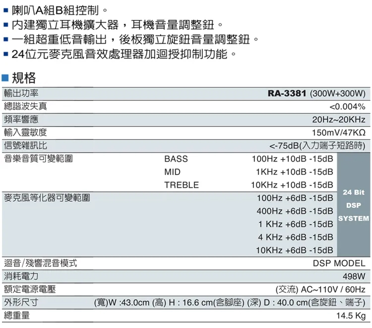 FNSD RA-3381(300W+300W高功率混音擴大機)