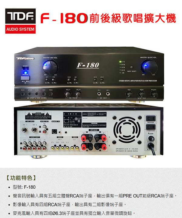 TDF F-180 前後級卡拉OK歌唱擴大機(180W+180W)