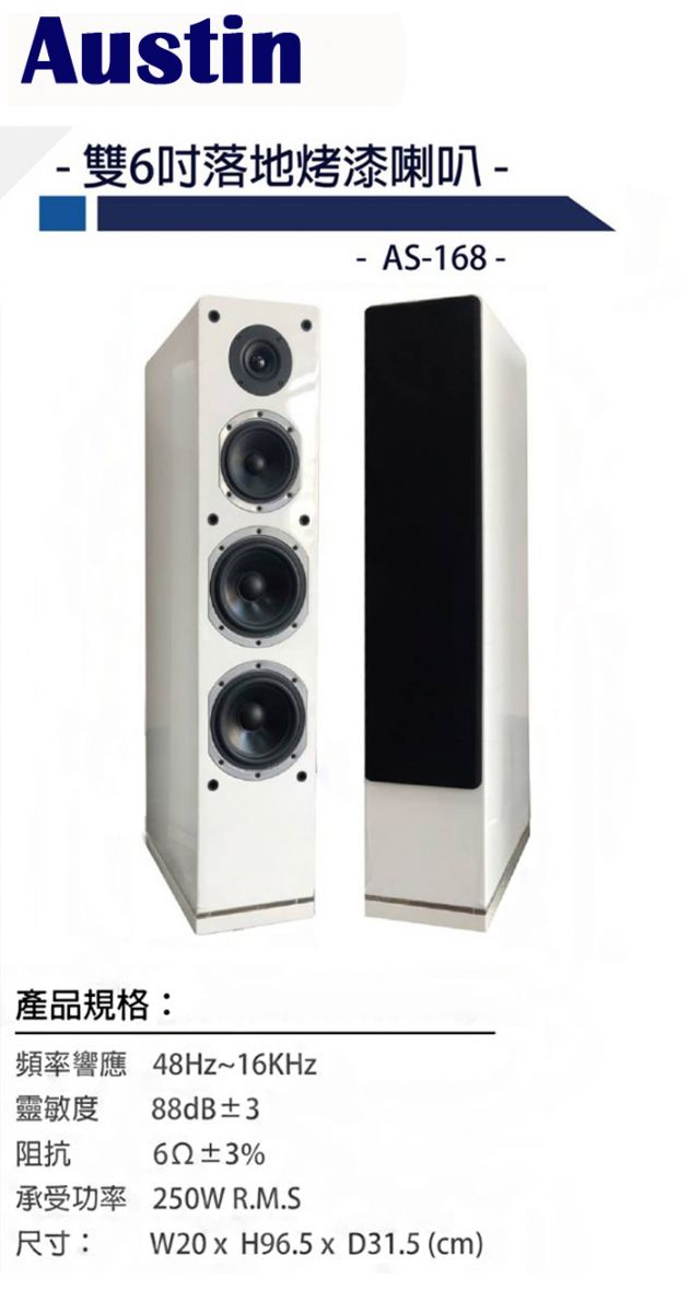 永悅音響 AUSTiN AS-168 卡拉OK喇叭(對)(黑)鋼琴烤漆 全新公司貨 (免運)