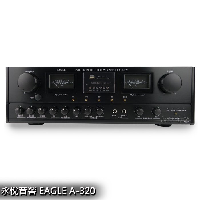 永悅音響 EAGLE A-320 數位迴音卡拉OK綜合擴大機 贈PRO-938麥克風兩支 全新公司貨 (免運)