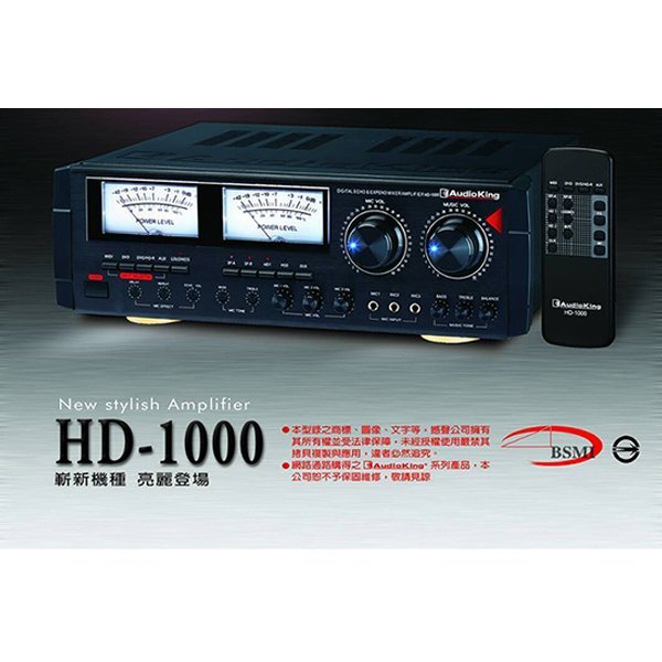 永悅音響 AudioKing HD-1000 卡拉OK綜合擴大機贈IA-6(紅)全新公司貨 (免運)