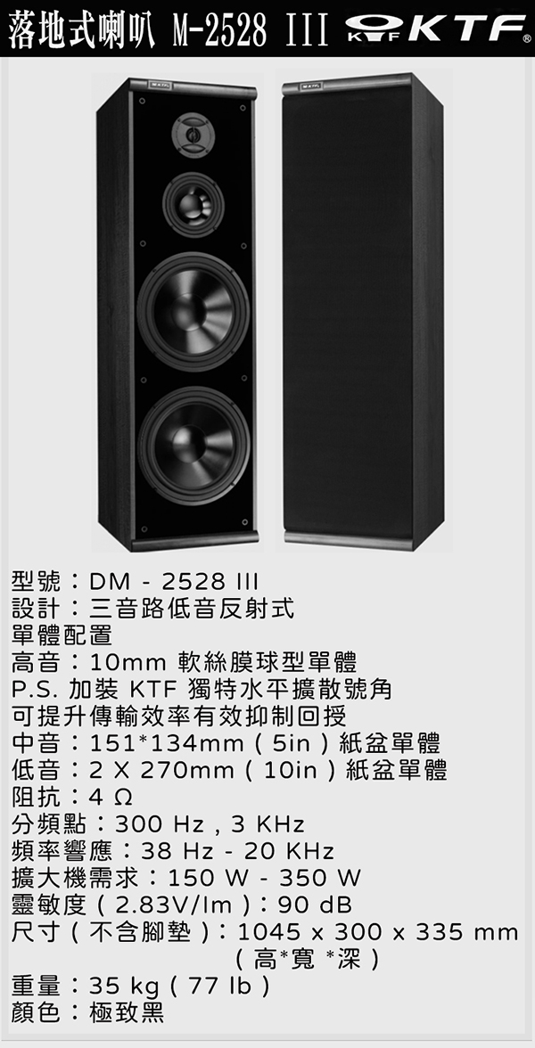 KTF DM-2528III 落地式喇叭黑色一對