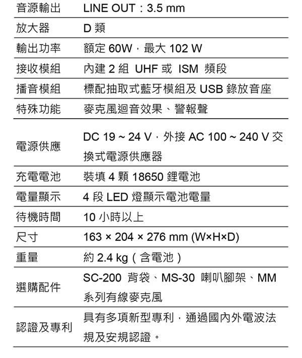 規格如有變動,恕不另行通知,
