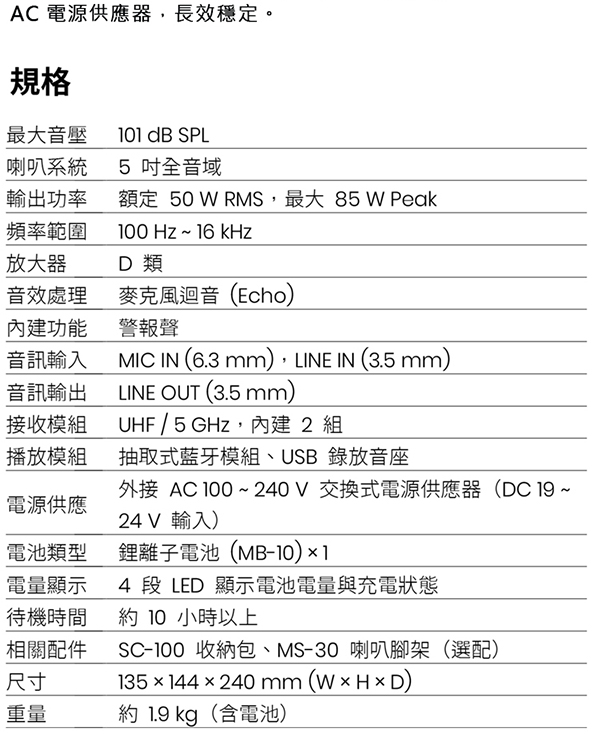 規格如有變動,恕不另行通知,