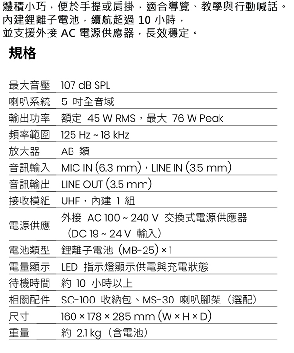詳細規格請參考官網