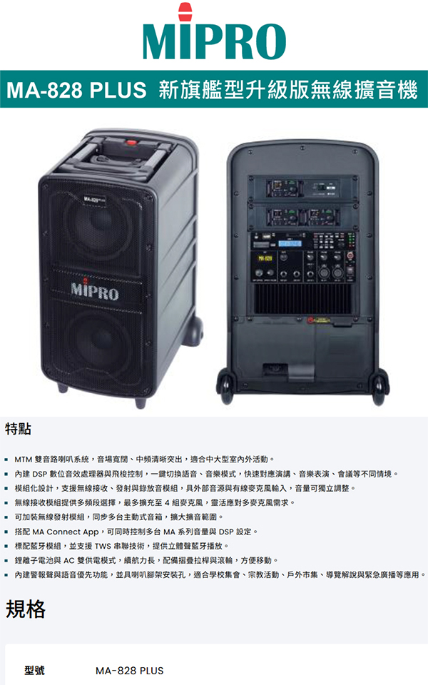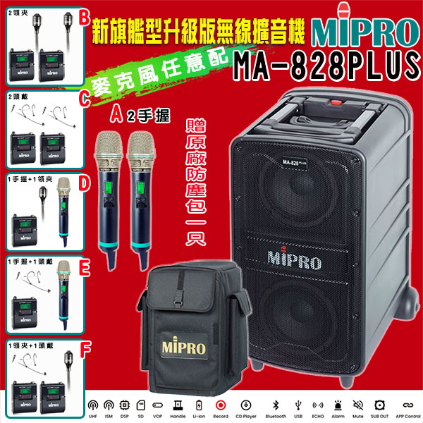 【MIPRO】MA-828PLUS 新旗艦型升級版無線擴音機(ACT-580H配件六擇一)