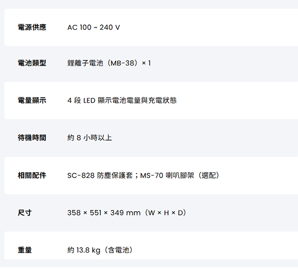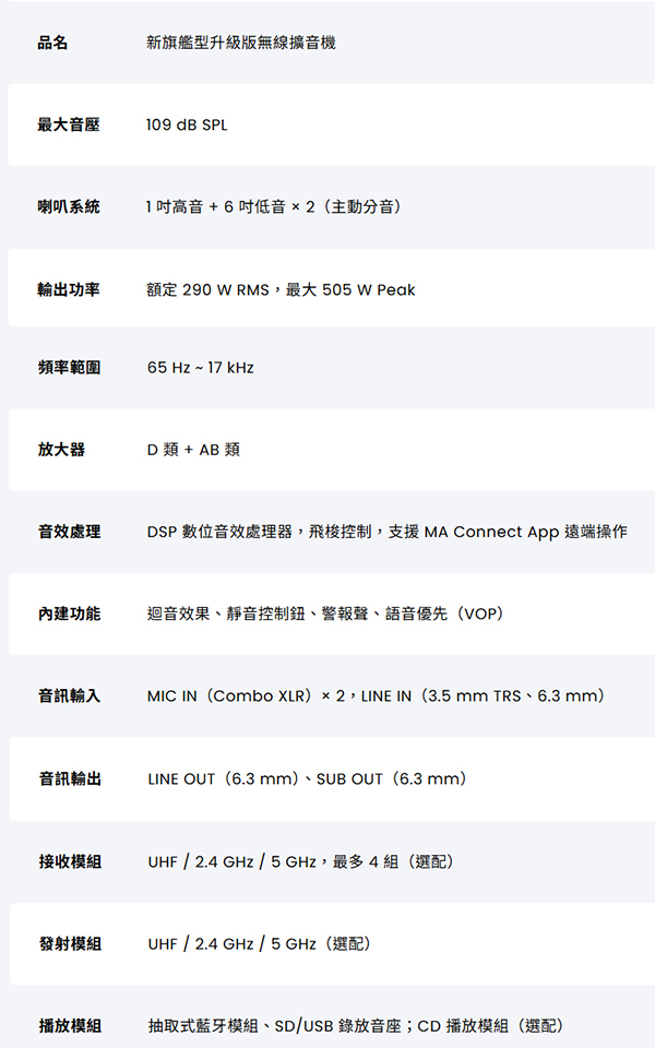 詳細規格請參考官網