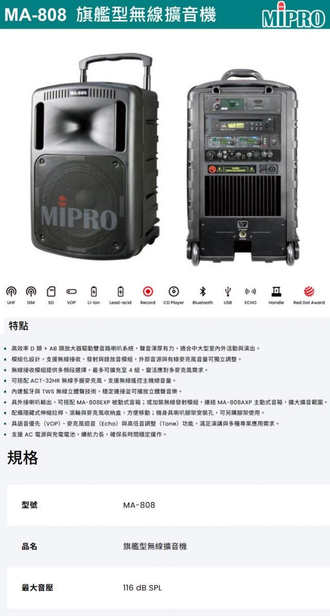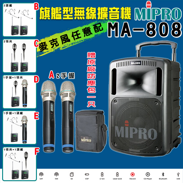【MIPRO】MA-808 旗艦型手提式無線擴音機(ACT-32HR配件六擇一)