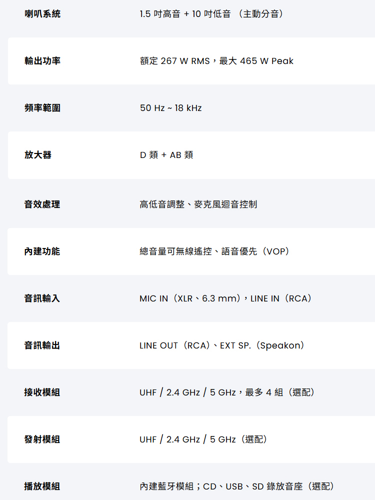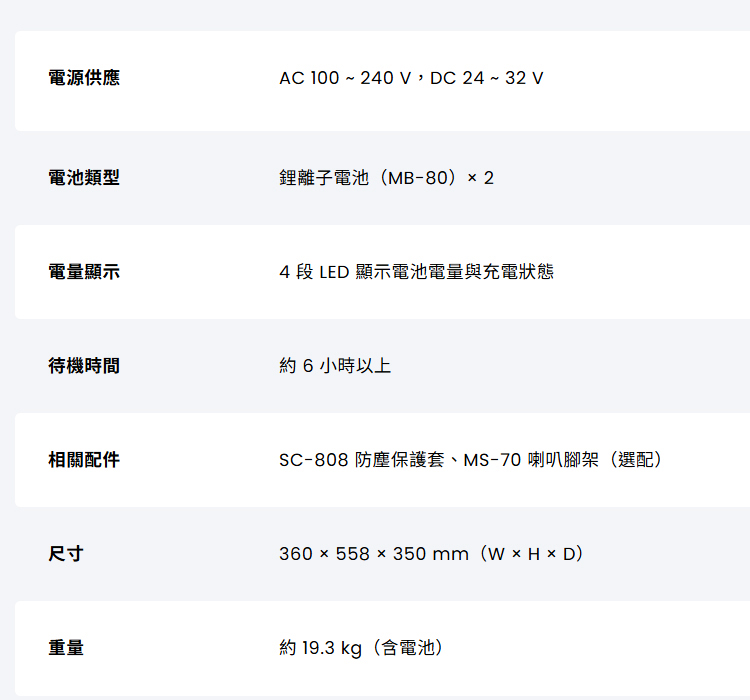 詳細規格請參考官網