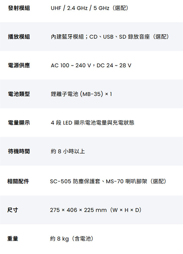規格如有變動,恕不另行通知,