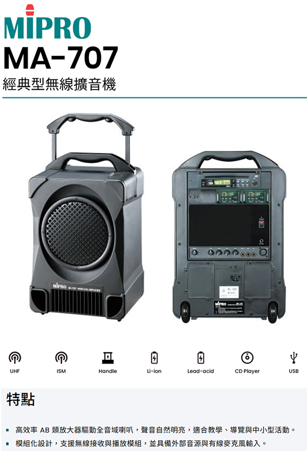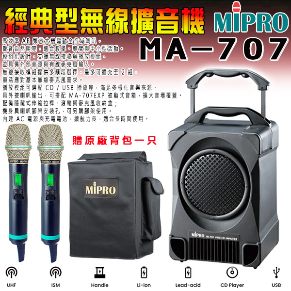 【MIPRO】MA-707 經典型無線擴音機配CD/USB(ACT-240H)