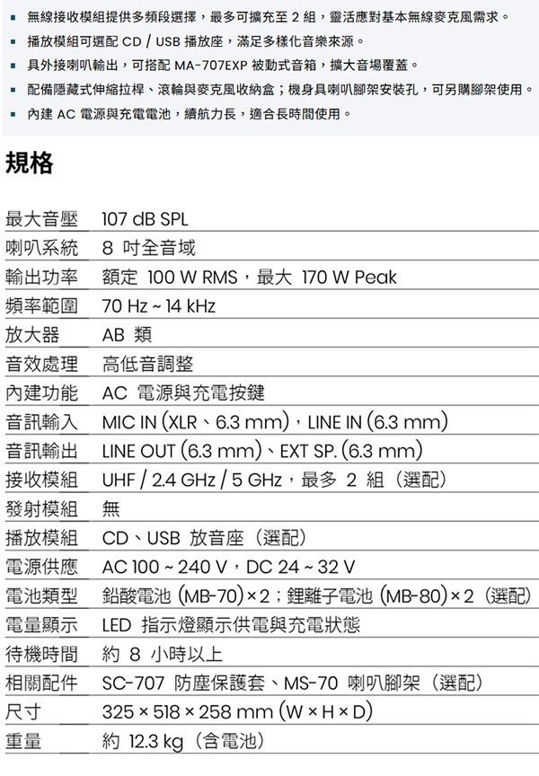 規格如有變動,恕不另行通知,