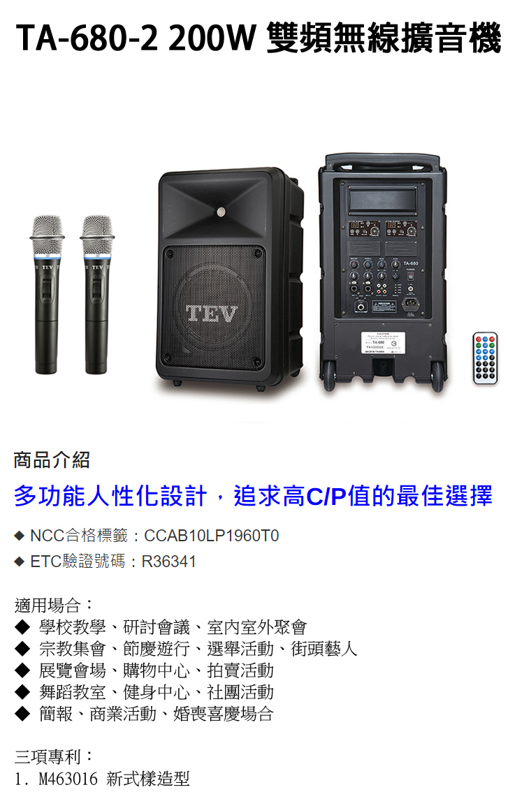 永悅音響TEV TA680-2 藍芽/USB/SD雙頻無線擴音機(贈保護套/有線麥克風) 全新公司貨