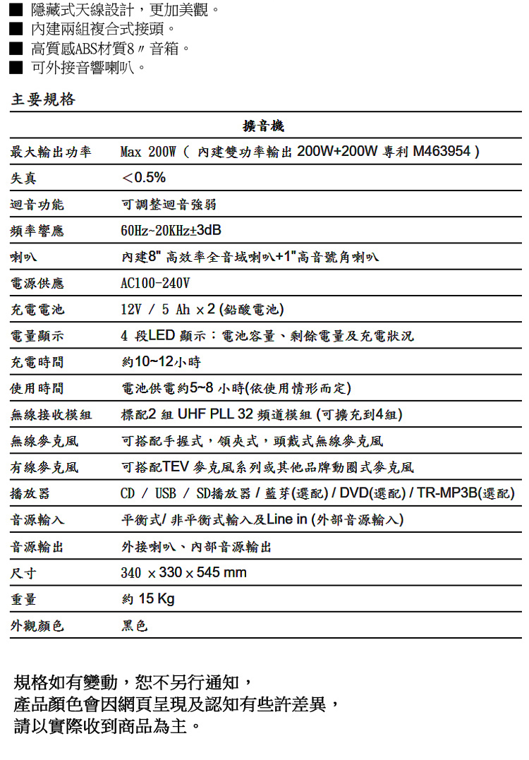 首頁 > MiPRO/CHIAYO /TEV 行動音箱