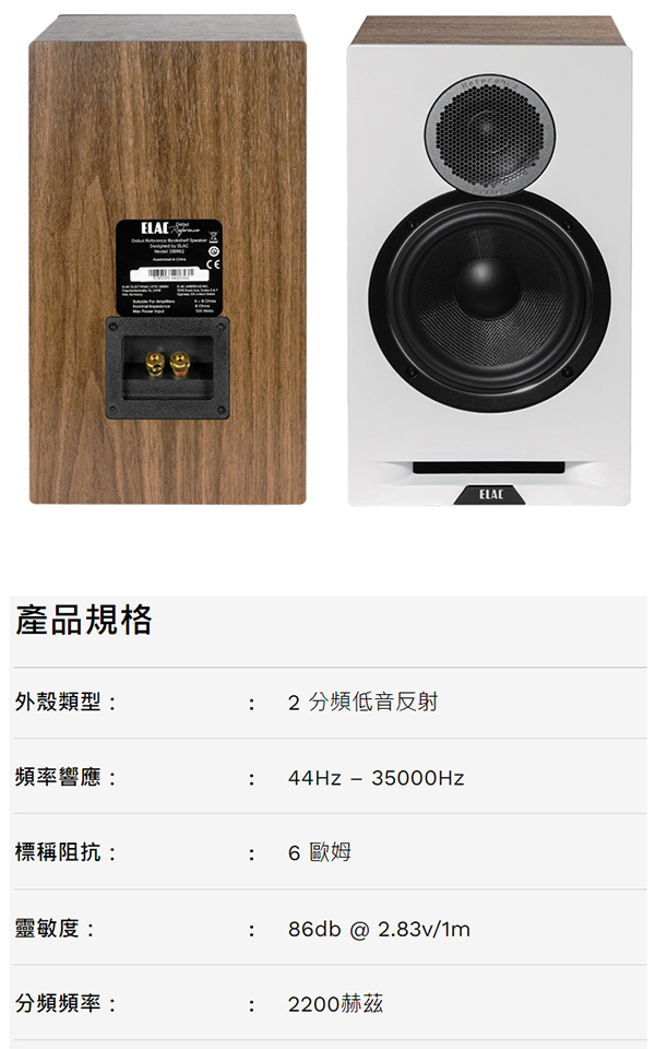 【ELAC】DBR62(書架式喇叭 咖啡白 釪環公司貨 保固三年)