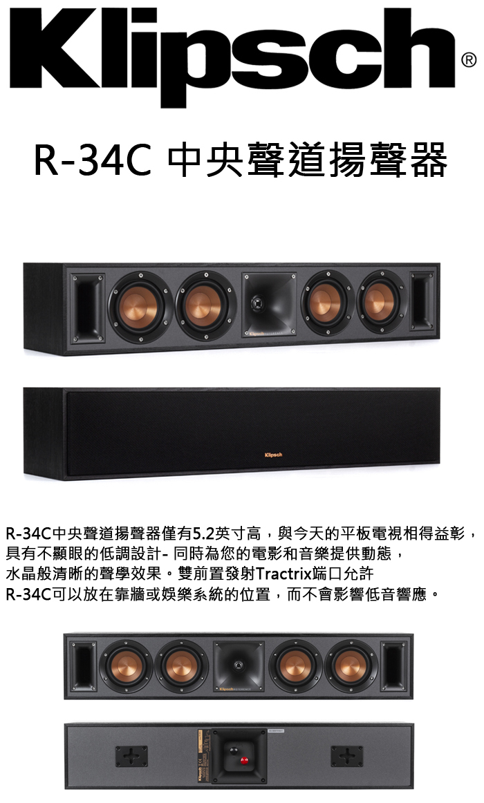永悅音響 Klipsch R-34C 中置喇叭 全新釪環公司貨 (免運)