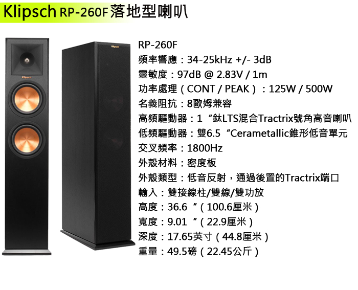 永悅音響 Klipsch RP-260F 落地型喇叭 (對)全新釪環公司貨 (免運)