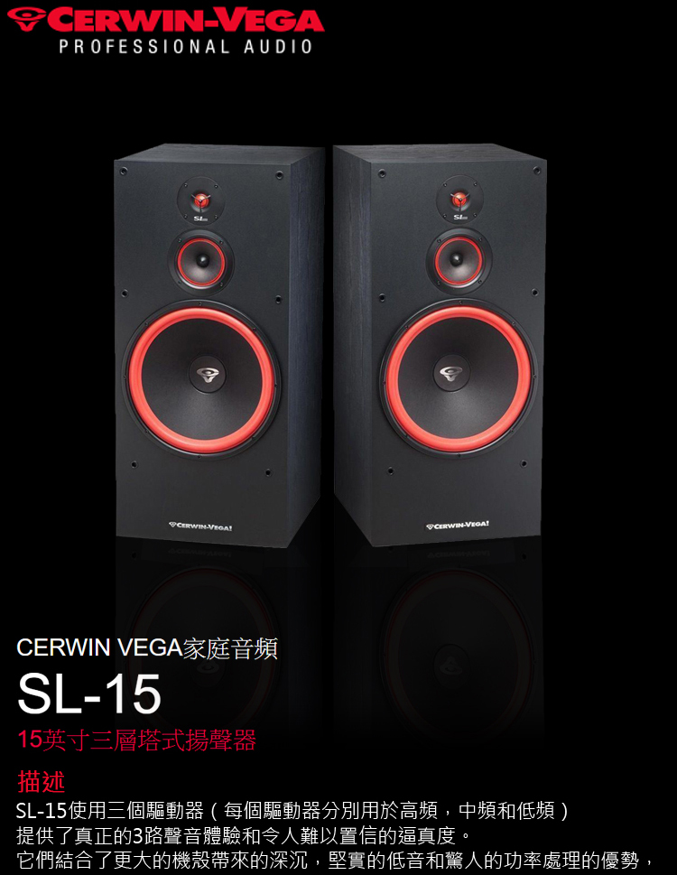 永悅音響CERWIN-VEGA SL-15 (對)15吋三音路落地型喇叭 全新公司貨歡迎+即時通詢問(免運)