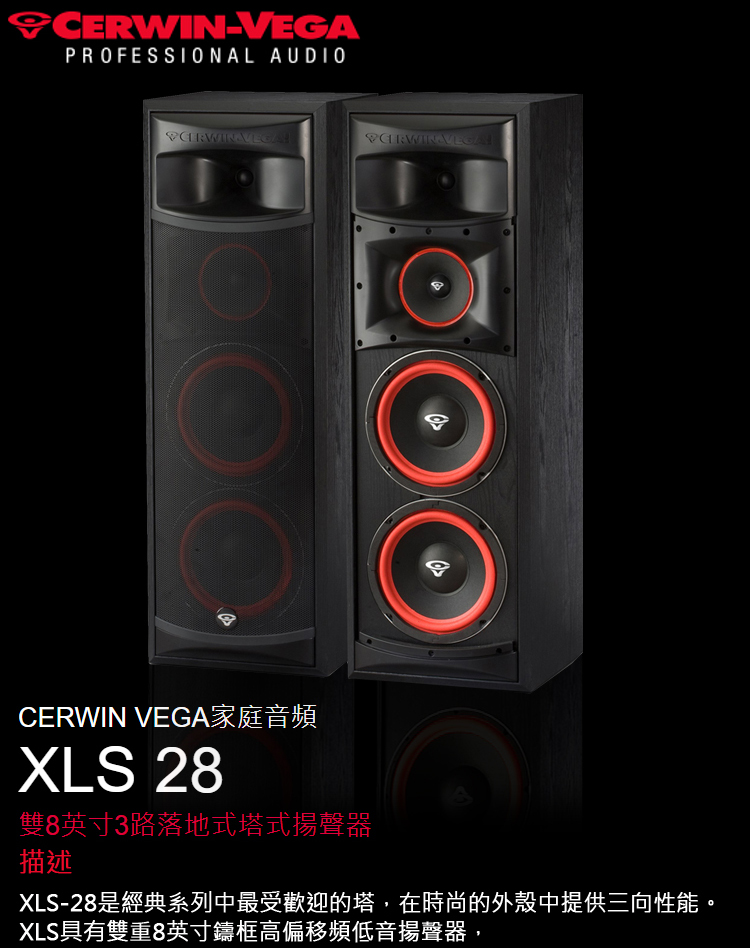 永悅音響CERWIN-VEGA XLS-28 (對)雙8吋3路落地式揚聲器全新公司貨(免運)