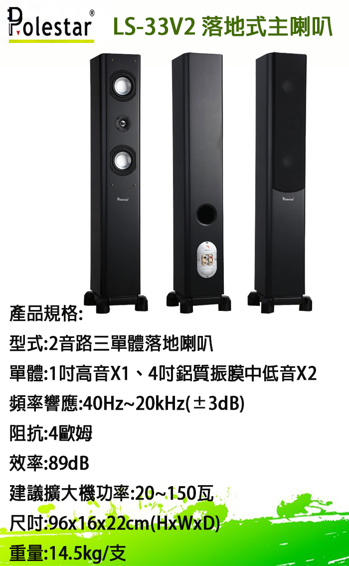 永悅音響 POLESTAR LS-33V2 落地式主喇叭全新公司貨歡迎+即時通詢問(免運)