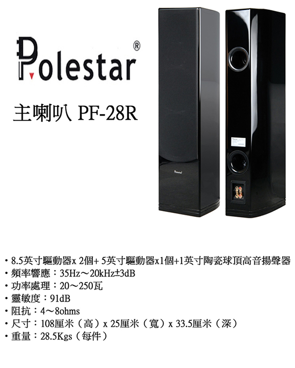 永悅音響 POLESTAR PF-28R (黑色) 落地式主喇叭全新公司貨歡迎+即時通詢問(免運)