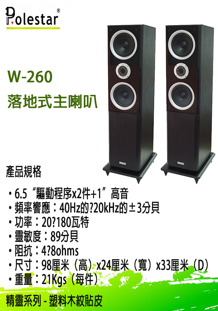 永悅音響 POLESTAR W-260 書架型喇叭全新公司貨歡迎+即時通詢問(免運)