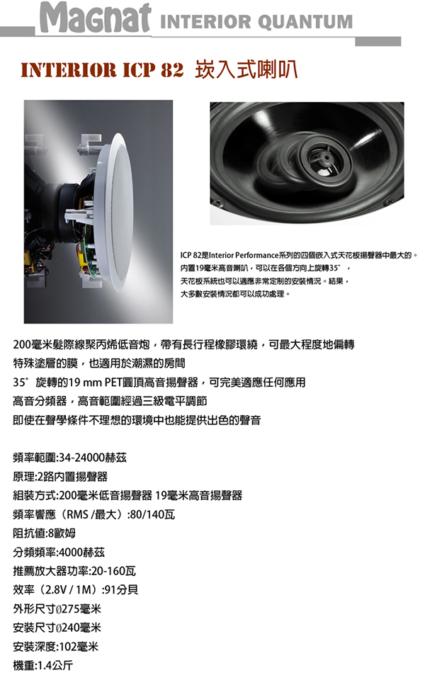 Magnat Interior ICP82 崁入式喇叭(一對)不含變壓器