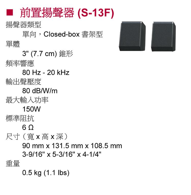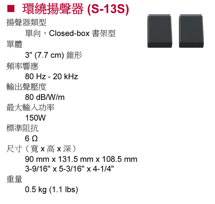 永悅音響 PIONEER S-13C + S-13S + S-13F 5聲道喇叭組(福利品)(含運)