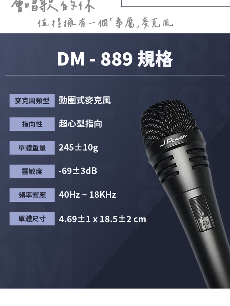 J-POWER 杰強 DM-889 有線麥克風(演唱級動圈式有線麥克風 附收納包)