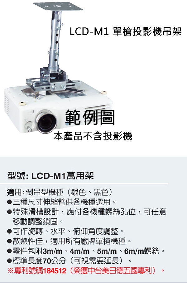 永悅音響 LCD-M1 單槍投影機吊架(黑色/白色) 萬用投影機吊架 歡迎+即時通詢問(免運)